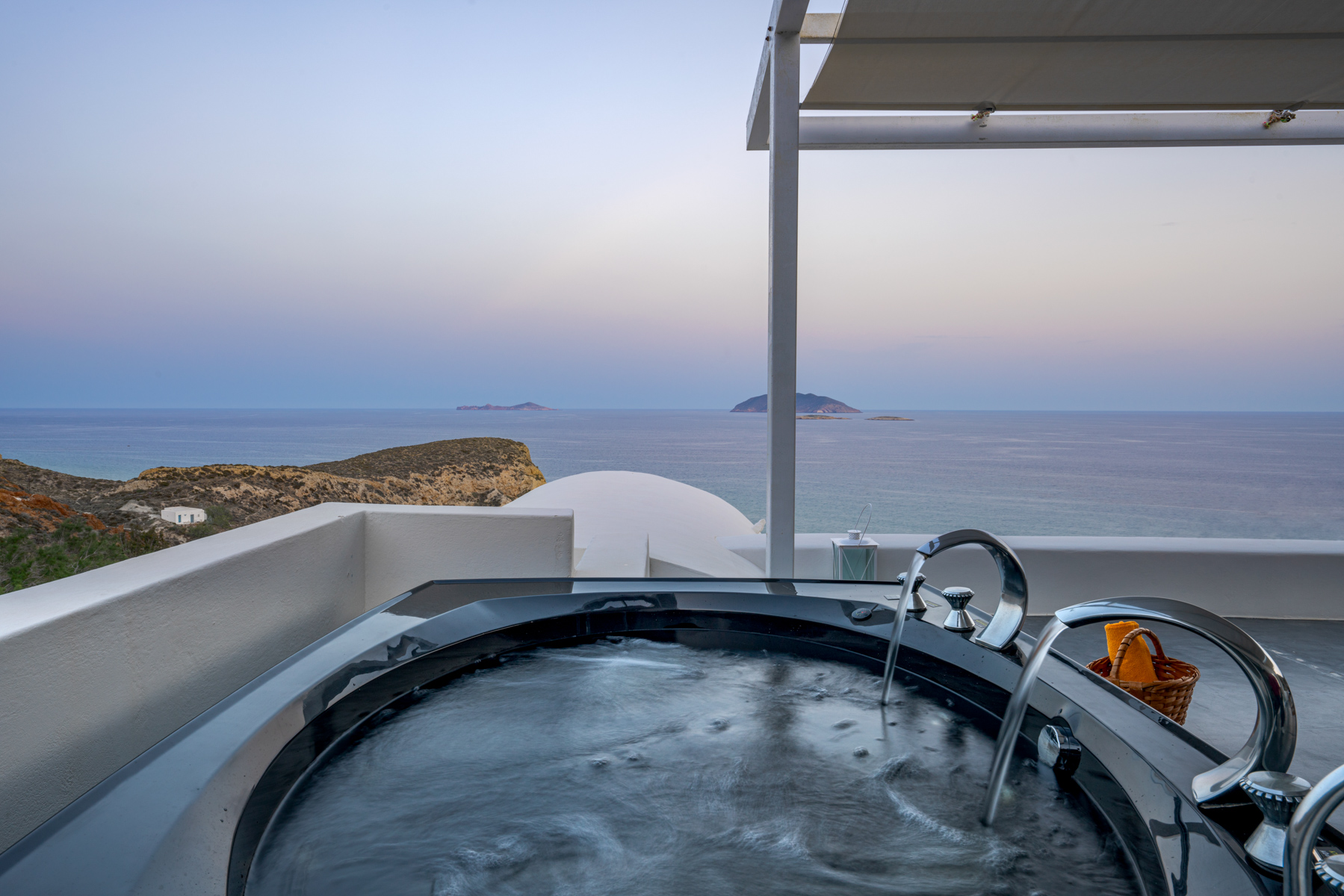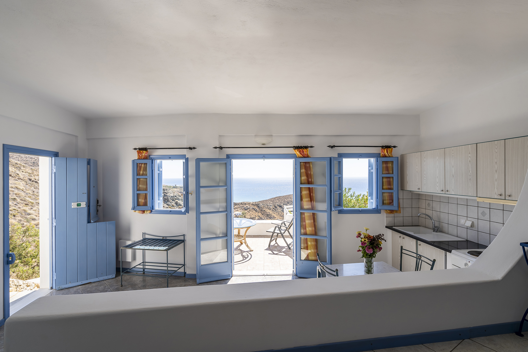 The Junior Suite Thalia, is located on a hill, 250m from the beautiful Klisidi beach and can accommodate 2-3 people. The Suite has a comfortable bed from which you can enjoy the sea view, a fully equipped kitchen, a bathroom and a spacious terrace with a Jacuzzi.